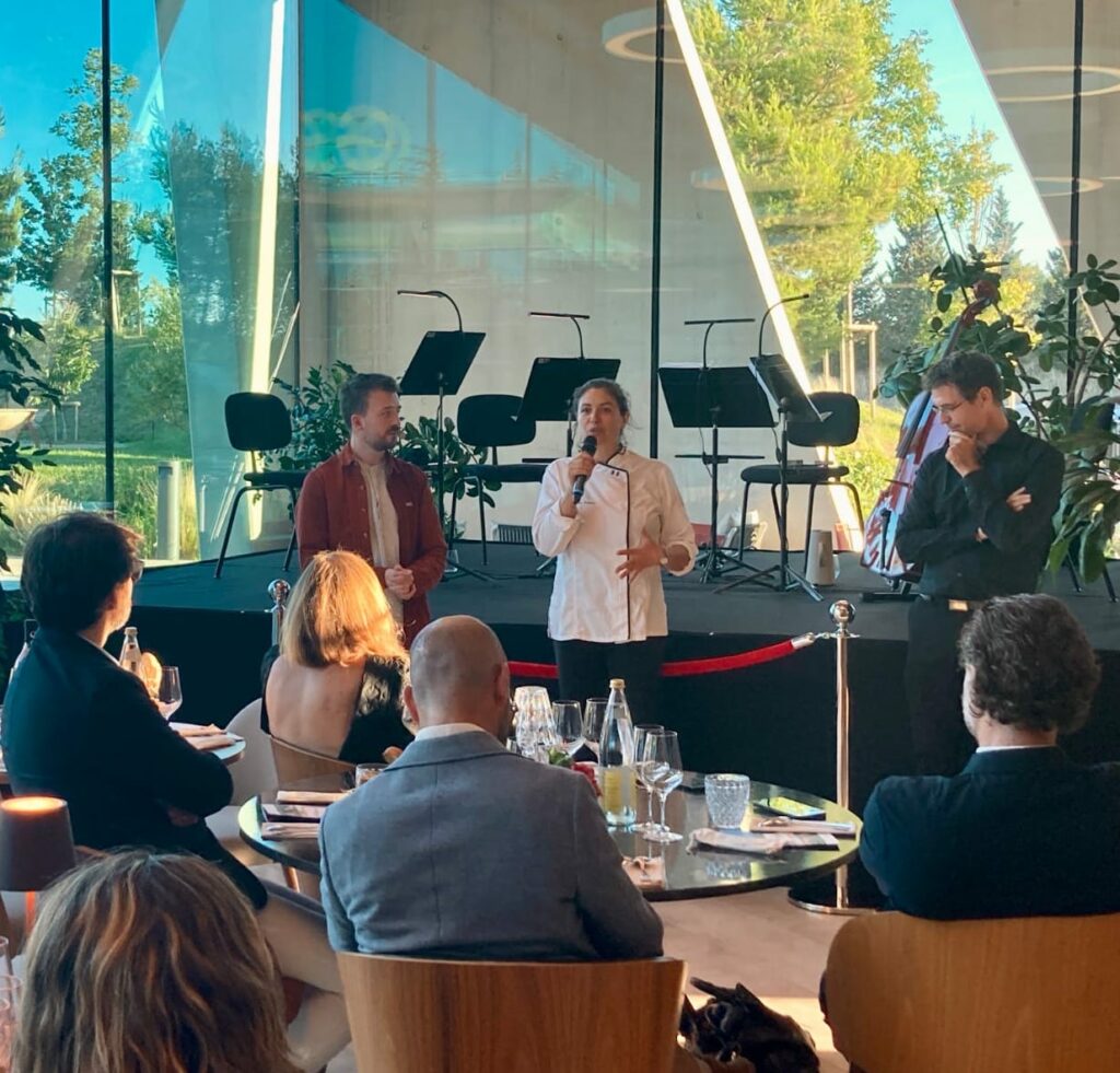 Première collaboration d’Accord Tannique avec l’Orchestre d’Avignon. Dans le cadre d’une soirée privée pour un de ses mécènes, j’ai eu la chance de proposer 4 vins exceptionnels à la dégustation. À mes côtés, un quatuor formé de musiciens de l’orchestre ont mis en musique ces vins. Cerise sur le gâteau, la cheffe Séverine Sagnet nous a concocté un accord supplémentaire !